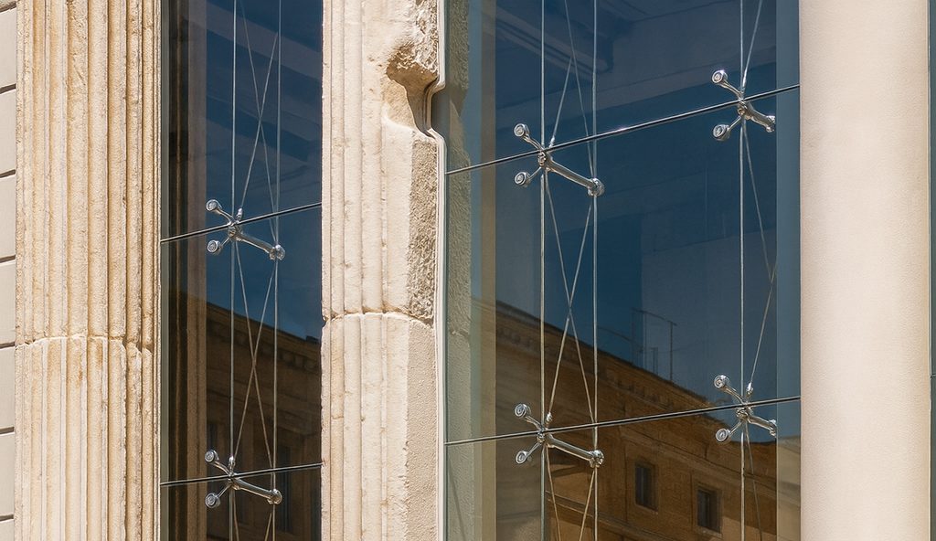 - Coste muy elevado: Tanto los herrajes de acero como la ingeniería de detalle y los vidrios perforados son muy caros.